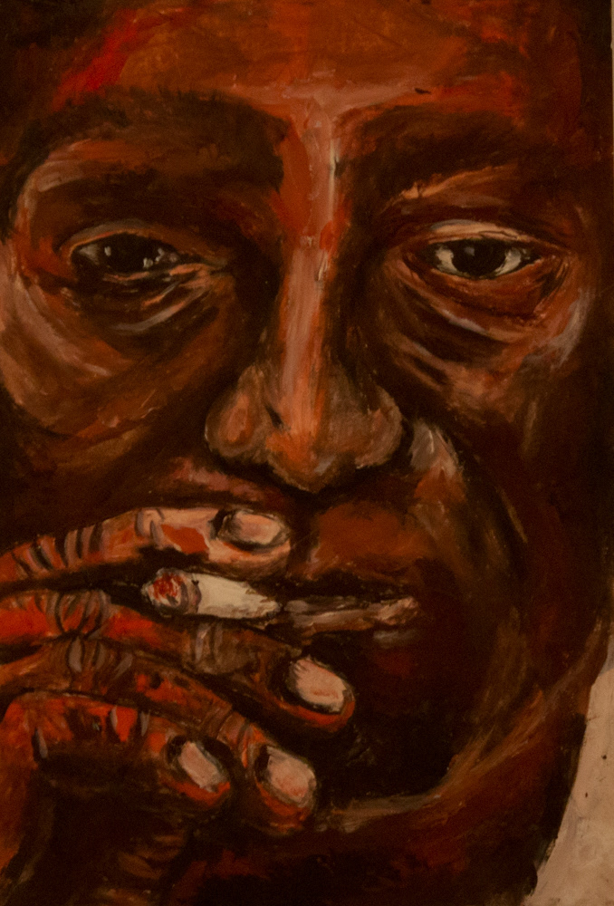 portraitĀ of a man smoking. Oil on paper