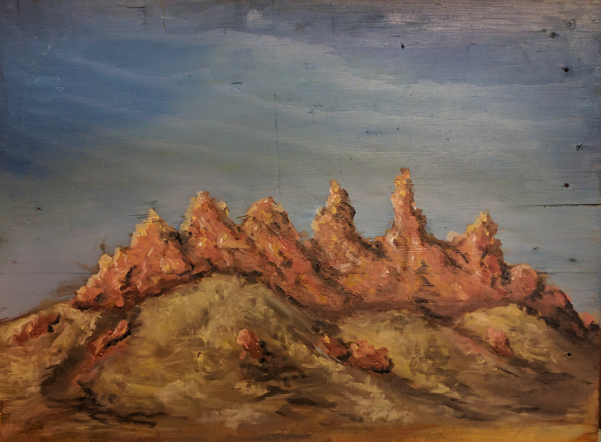 Rocky outcrop, West McDonald Ranges, Alice Springs. Oil on plywoodÂ